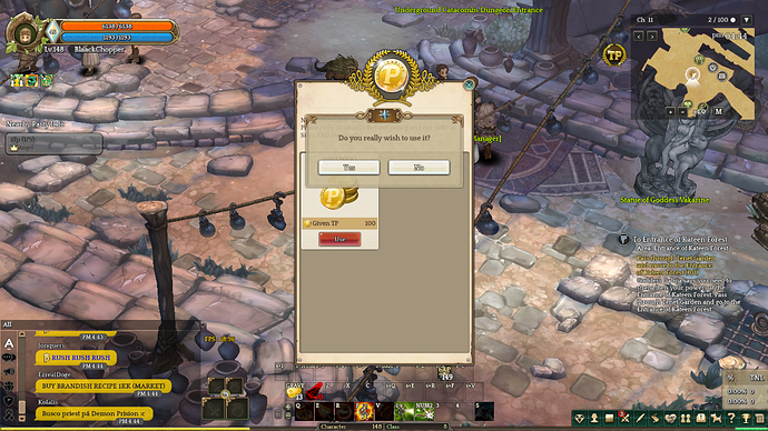 I can’t redeem my TP. I bought a pack of 100 TP today (it is my first one), then I entered the game and I can see the TP button on the top right corner and the TP is there but when I click to use it nothing happens.