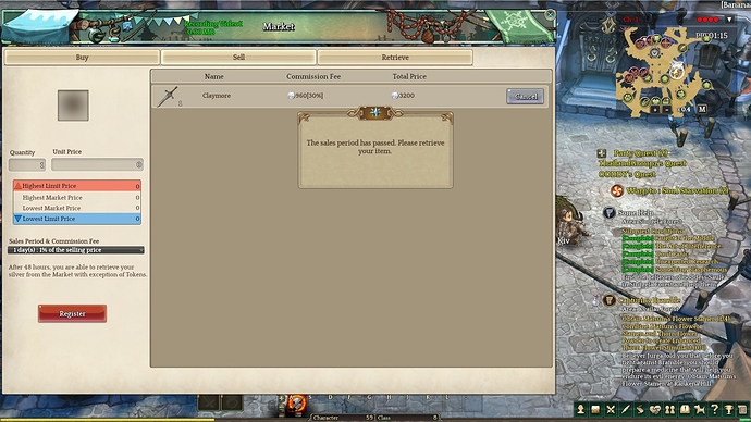 Where it happened (which map, which quest, which npc, etc) : Can’t retrieve expire item from market