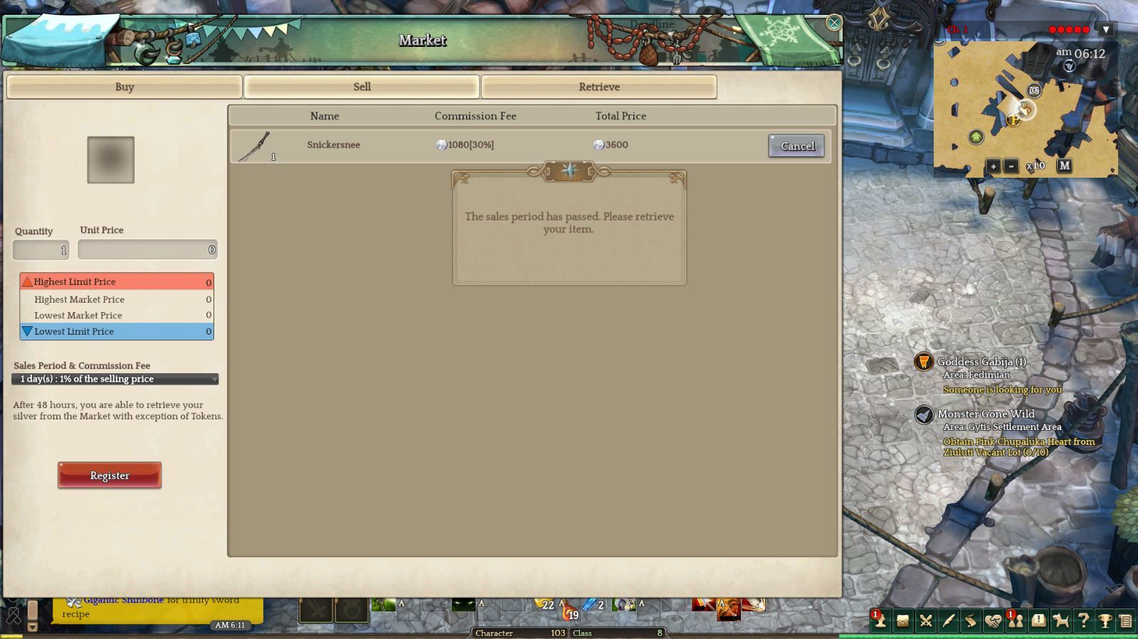 Bug Description : Can’t Retrieve items from Market after sales expired