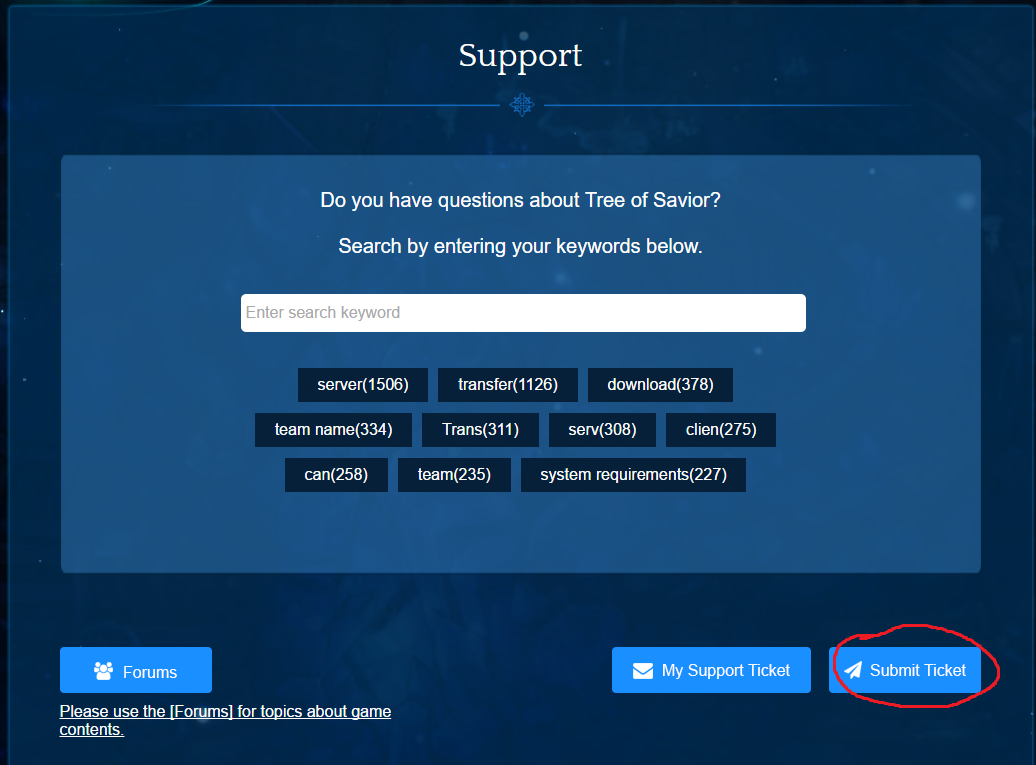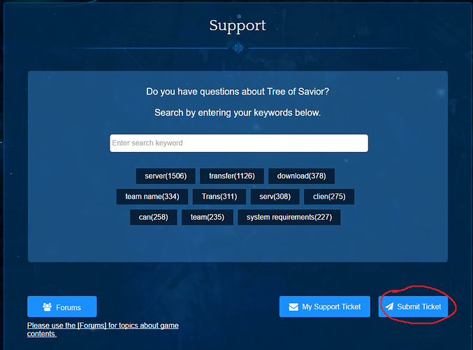After that, go to Submit Ticket, it is on the right a little bit under the support center message.
