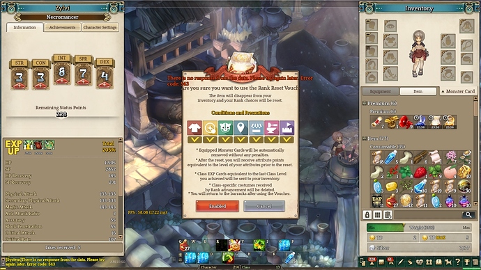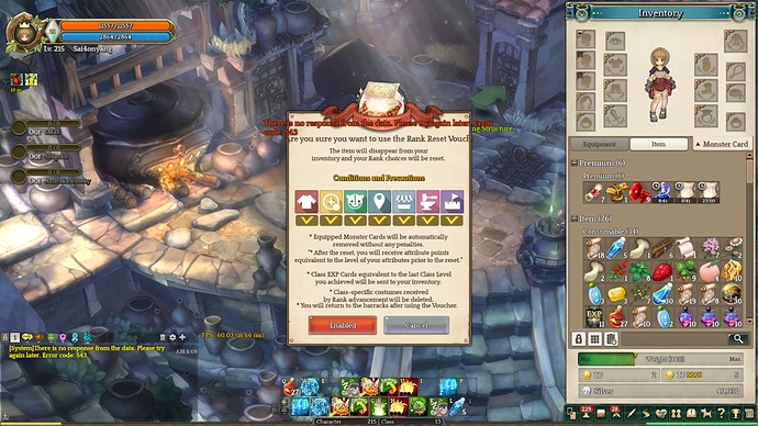 Bug Description : “There is no response from the data. Please try again later. Error code 543”