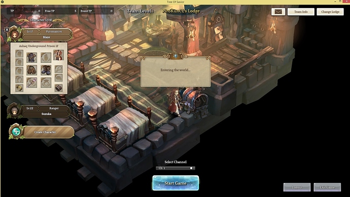 When i first enter to Ashaq Underground Prison F1, the game kick me out, and now my char is stuck in the lodge.