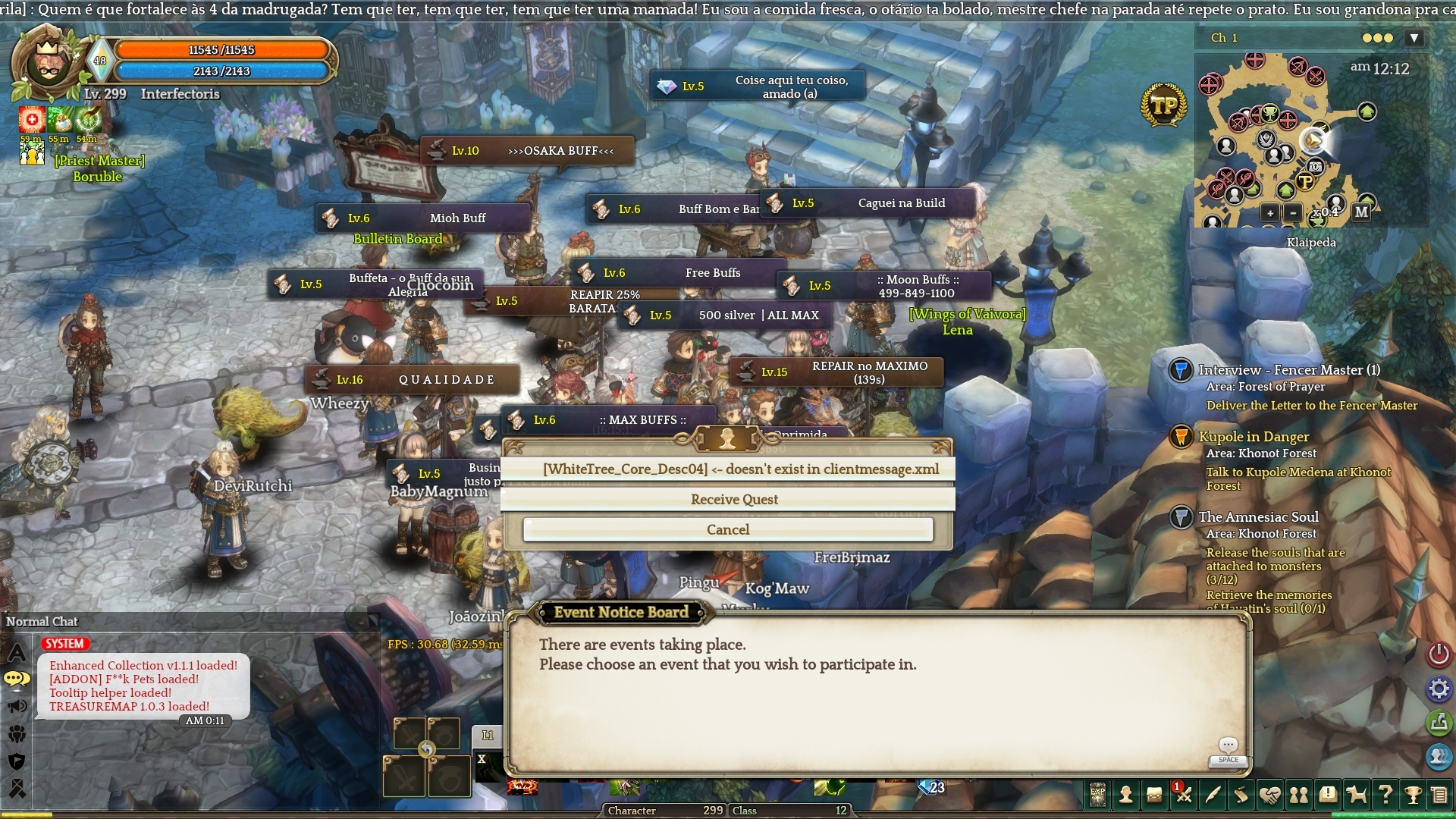 Unknown error while interacting with the Event Notice Board in Klaipeda or Orsha.