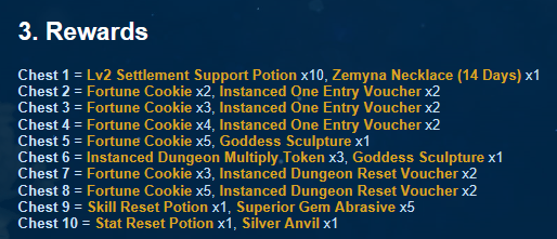 Bug Description : I went to Klaipeda (I don’t know how to write the name of this city, ok?) and talked with the noticeboard that gives 10 chests (the event chests). I was level 68 (or 67 idk) and tried to open my first (that opens at lvl 66) IN THIS CHARACTER (My other character have opened his 1st before), but I couldn’t open! It said that I must reach lvl 73 to open the first chests. So now idk, is this event per-character or per-team? Because I lost a bit time of leveling up in dungeons because of this… please help me