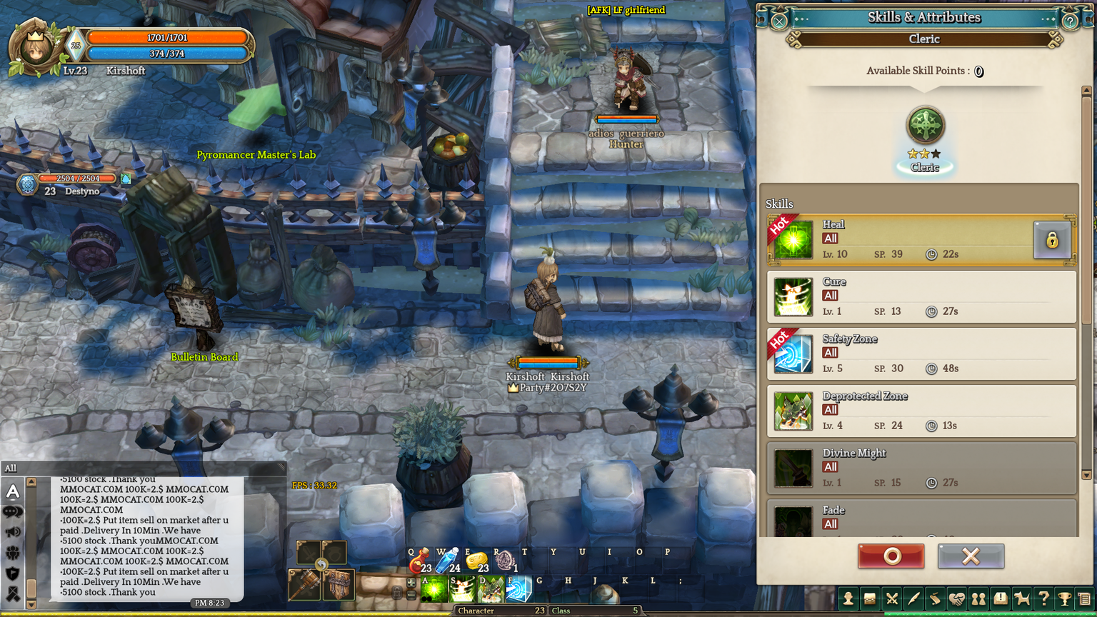 Hi, i make my cleric c2 and when i go to see the skills i see fade and divine might like unable to use. I dont know if this threat is on other section but i cant use those skills, they just seen to be black, anyone can tell me what to do with this please. thanks