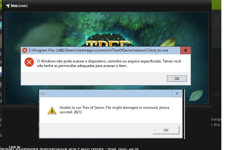 Unable to run Tree of Savior. File might damaged or removed, please reinstall. (621).