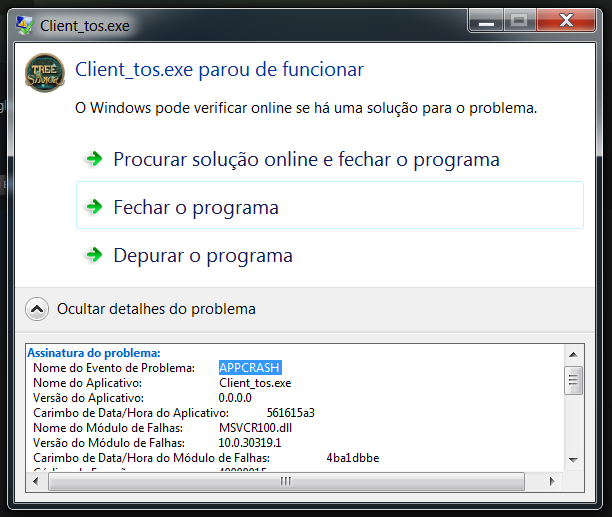 Faulting application name: Client_tos.exe, Version: 0.0.0.0, time stamp: 0x561615a3