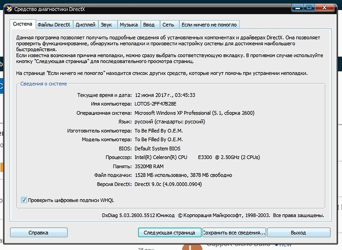 - OS : Windows XP Professional Service Pack 3 Build 2600