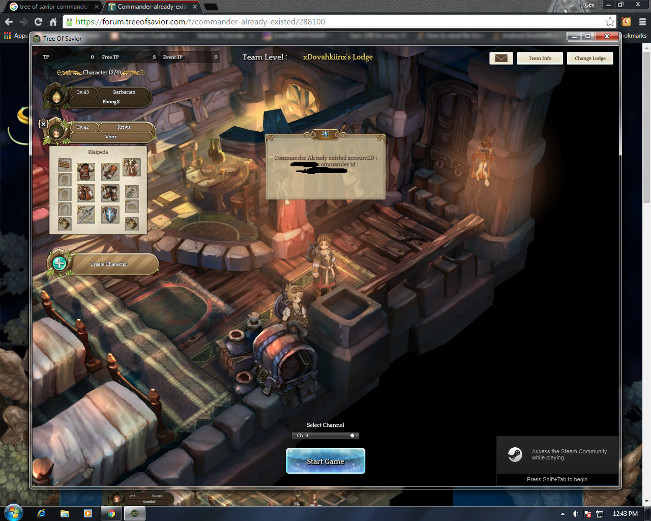- i select charector. i got message ‘commander-already-existed xxxxxxxx’
