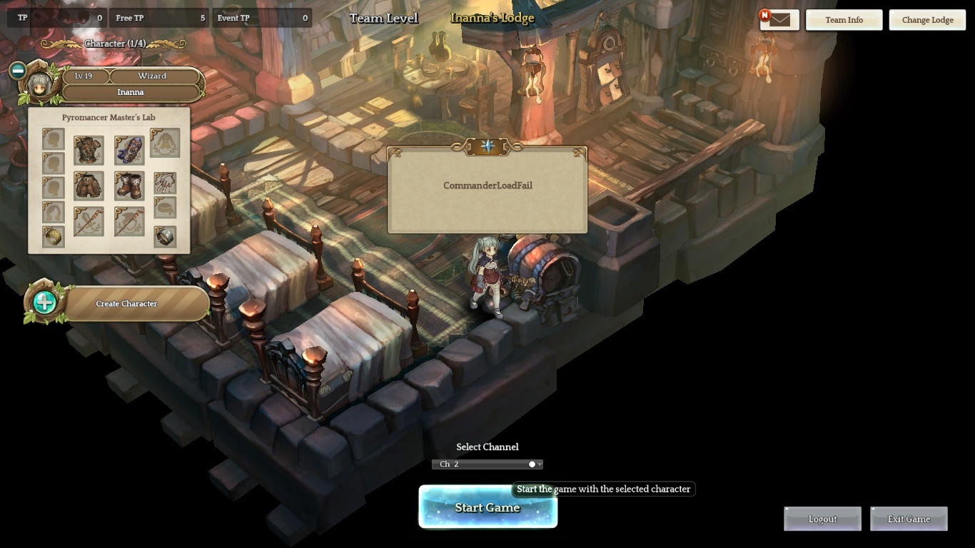 I entered the room next to the wizards master in klaipeda city, (Klaipeda Server) and the server logged me off, now I try to connect and all I got is “Commander Load Fail” with only Channel 1 and 2 as options, so I’m basically stuck with no option to connect mi char.