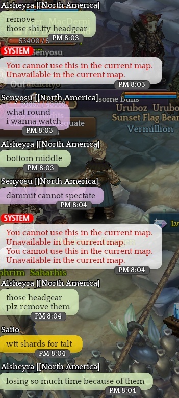 - Reason for report : Player Alsherya having the worst attitude in team battle league 7pm EST slot. Literally sat around complaining about a headgear being used against player Karga just because it had Ice property Attack. Is there any real reason to sit and complain about an already imbalanced PVP instance when only one of the players (Me) is able to kill Karga?