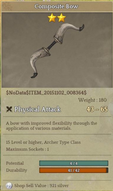 The Composite Bow’s description has a placeholder value: $NoData$ITEM_20151102_008364$