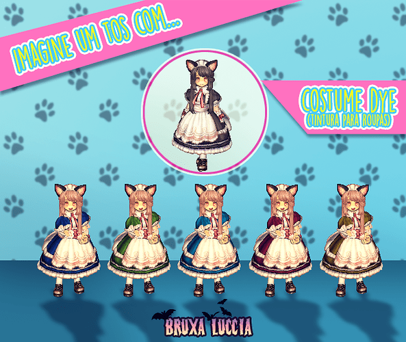 I used the Maid Dress as an example. It has an alternative version called âDyeable Maid Dressâ. And of course, not only Maid Dress but a few more costumes would have a âDyeable versionâ of the original.