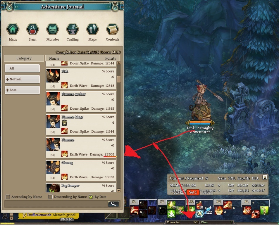 with a few seconds of downtime in between rush and the 2nd spear lunge where you pop your filler skills. After the second stabbing, dps would start to fall off due to rush being on cooldown and barbarians would start puling ahead in damage for about 10 seconds. With that said, this is under ideal conditions where the boss is a sitting sandbag, which isn’t usually the case for high level field bosses. There will be times where you have to reposition or times you need to heal and buff up. It’s in these situations where the utility from trot + mount truly shines.