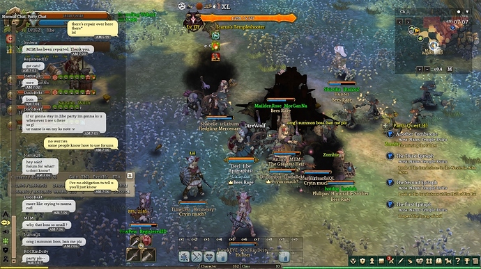 Reason for report : my party was peacefully grinding at dina bee area til this party came trash talked us and stealing our area. very toxic.