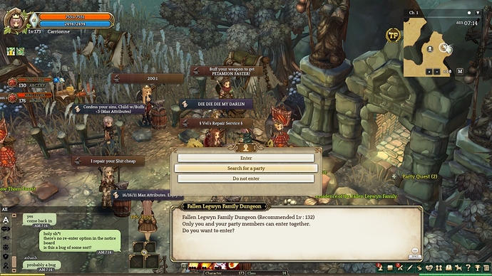 I was running with some random people in 130 dungeon when it suddenly, all mobs and my party mates stopped moving. I can cast spells, but nothing comes out. I then decided to re-log, but I can’t find the “re-enter” option in the dungeon board options. What’s worse is that my dungeon entry is already counted.