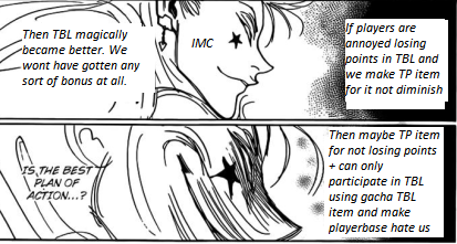 Regarding your suggestion to players not getting tbl points when they lose, your anger against players Afking on Tbl is understandable but it doesn’t justify something like hurting all other players besides you and those who are always winning against other people at tbl.