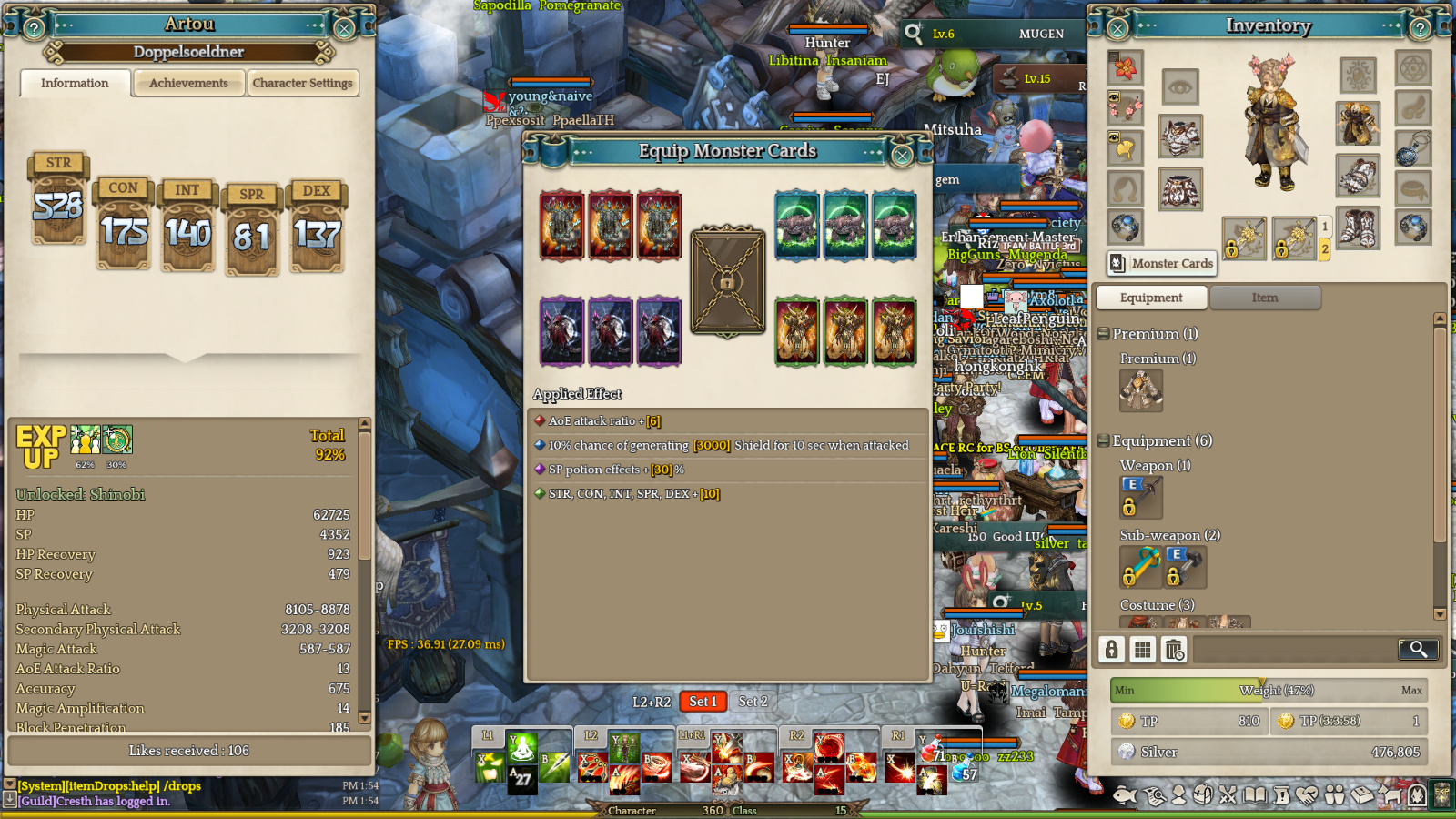 everything is thrown into str, 3 more stat points unspent from sausys quest reward.