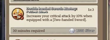 I bought the first level this attribute, that give 10% of critical attack with a two-handed sword. Bought the second level too, but still is write that give 10%. I want buy the third level, but the value don’t increases. How do work this attribute? I didn’t understand T-T