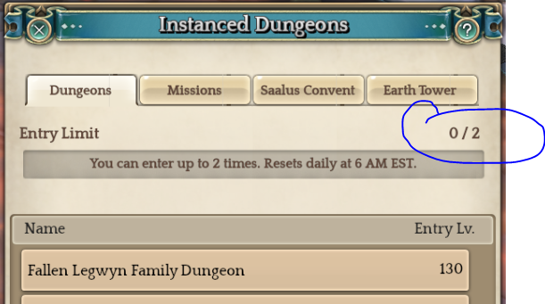 From the forum it seems that my dungeon entry limit is always set at 0 (doesn’t reset over the next day). Is this a bug ? I can’t any dungeon at all since the beginning to the game.