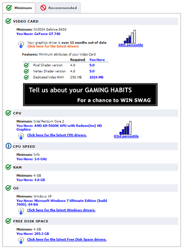 got the minimun already tried things like reinstalling verifying cache on steam and reinstalling directx and c++ 2003-2015