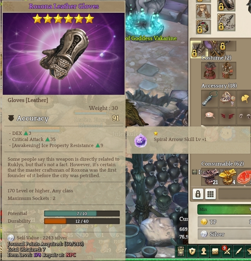 Roxona Leather Gloves with Ellom Monster Gem (Spiral Arrow)