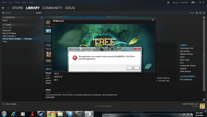 after I downloaded ToS in steam and it downloads some files after that this error came up "The application was unable to start correctly (0xc000007b). Click OK to close the application any fixes ?