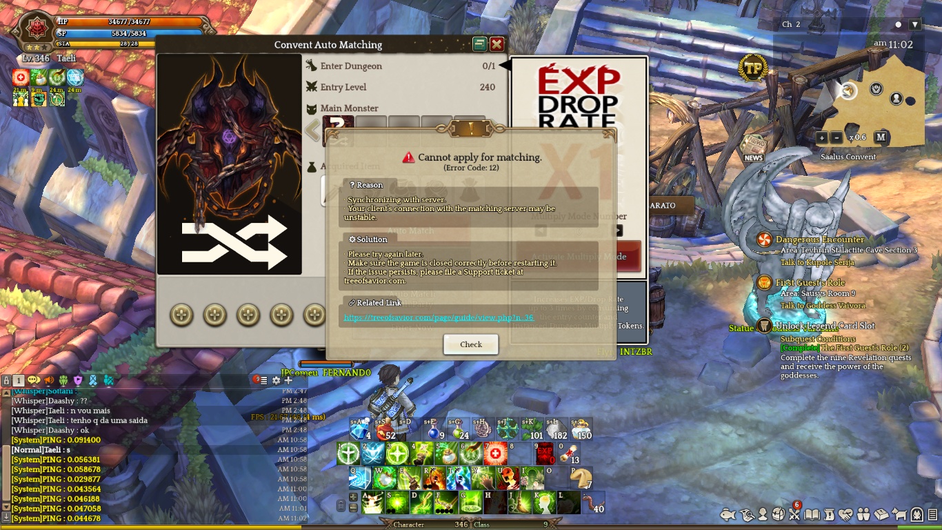 Every time I log into the game I can not see the chat, it loads after a few minutes, I can not return to the CM because the option does not appear and this error to enter the DG started to appear