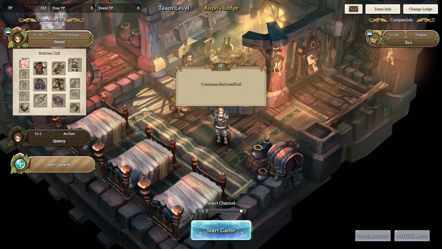 Bug Description : i can’t login with my Swordsman, the game display a message (CommanderLoadFail) and disconect.