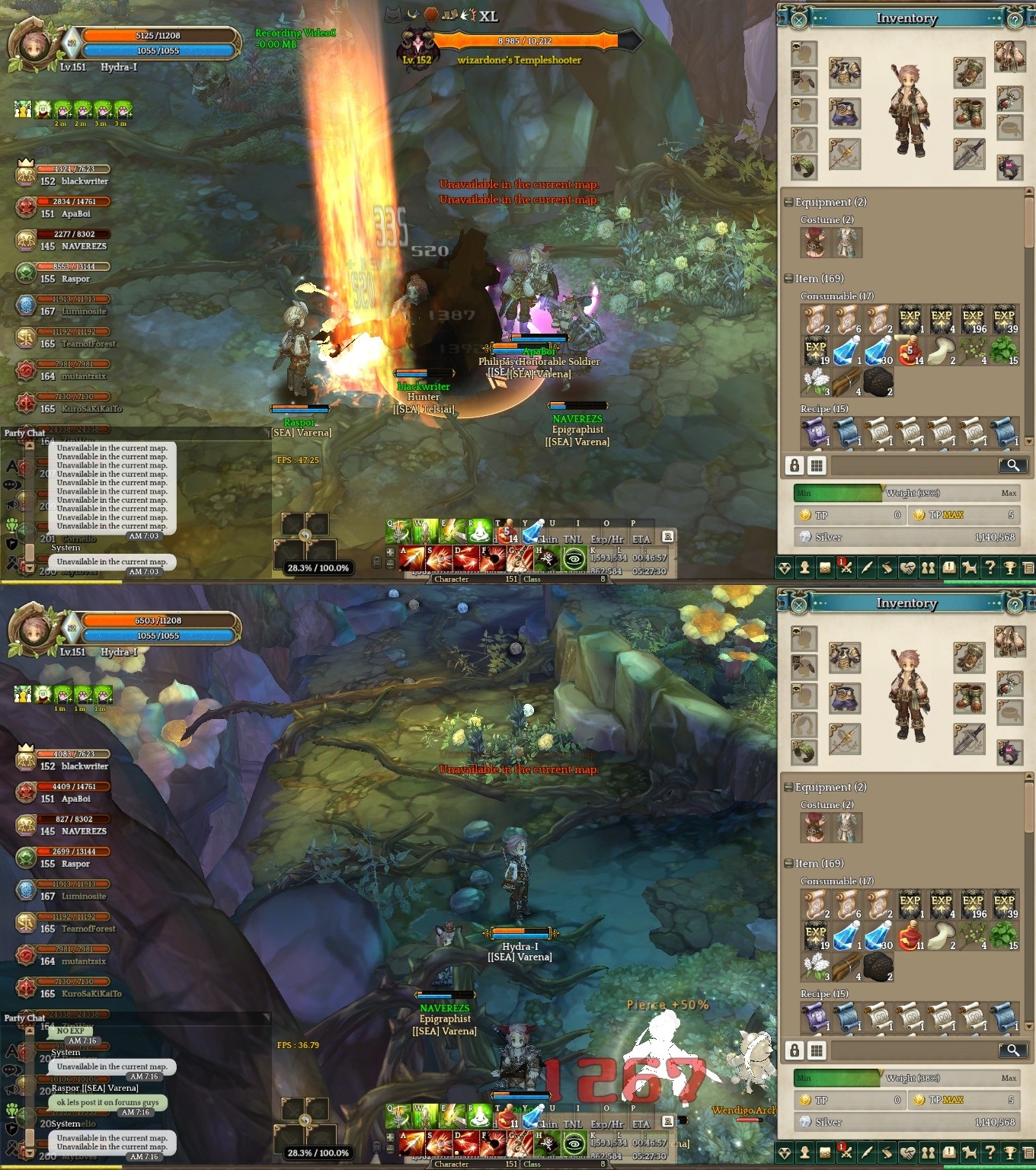 AS YOU CAN SEE THESE IMAGES ARE TAKEN AT SEPARATE TIMES THE FIRST ONE GIVES INFO ON SILVER AND EXP…AFTER A WHILE IN THE DUNGEON I TOOK A SECOND SHOT TO SHOW THAT THE EXP AND SILVER DID NOT CHANGE…AND PLUS LOOK AT THAT PARTY. 10 MAN PARTY OMG…THIS IS FROM “SEARCH A PARTY” FEATURE.