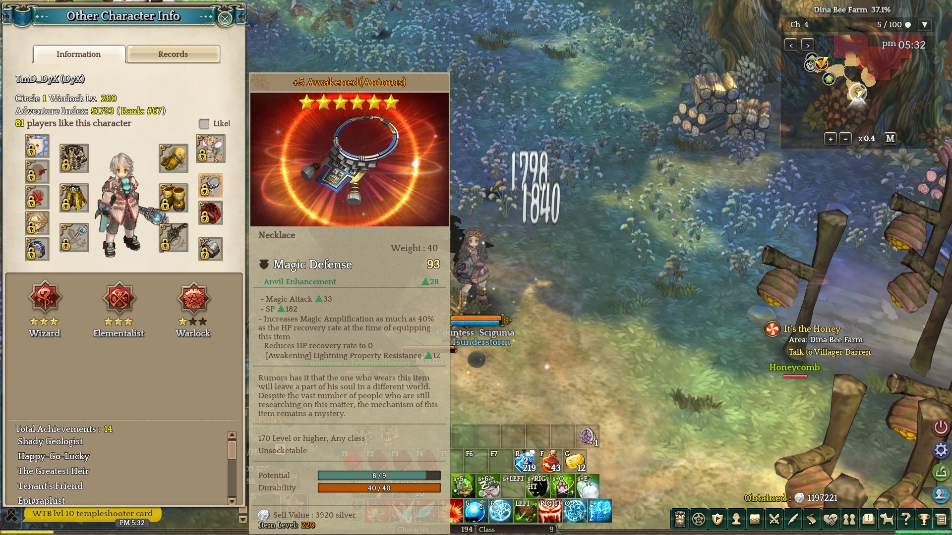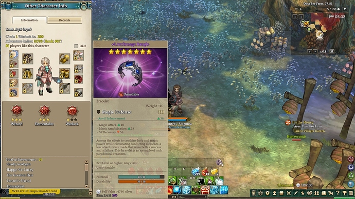 Also given that TmD_DyX is part of TheRed and TheRed was proven (caught red handed) channel crashing to reset a guild tower recently it is highly likely that this player is crashing channels to upgrade his gear. Also the rest of his gear looks similar.