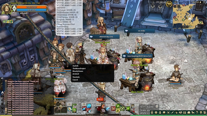 Here is the Klaipeda player doing the same thing. Character name is “hjgu”. They’re hiding in the pile of market people and because they have no teamname there is no way to block them. I guarantee lots of incorrect reports and blocks are happening in that pile of players.