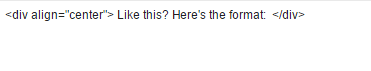 Im wondering how to do a center format here whenever you post? ive been trying to use < centre>< /centre> or [centre][/centre] it doesnt work.