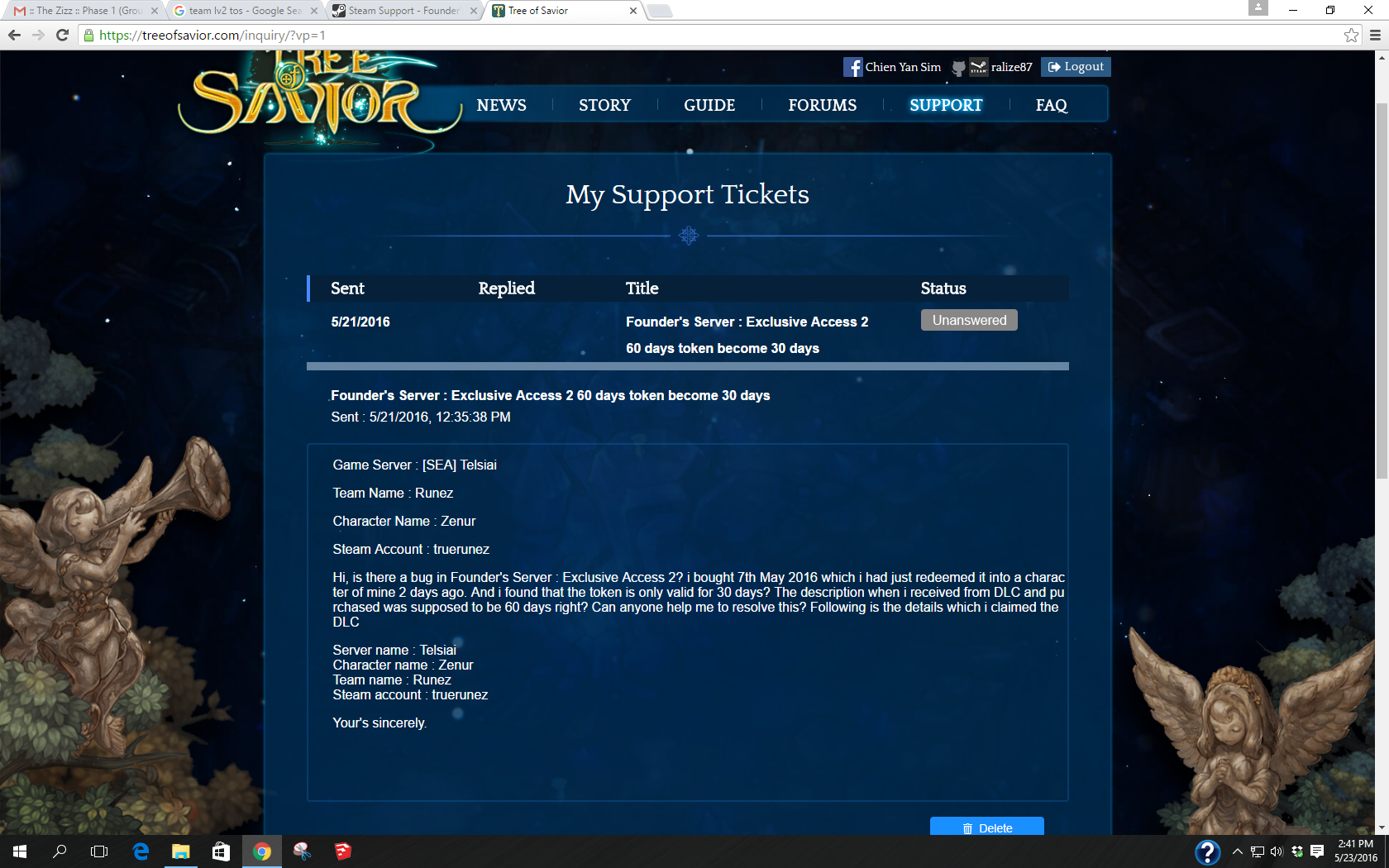 Hi, is there a bug in Founder’s Server : Exclusive Access 2? i bought 7th May 2016 which i had just redeemed it into a character of mine 2 days ago. And i found that the token is only valid for 30 days? The description when i received from DLC and purchased was supposed to be 60 days right? Can anyone help me to resolve this? Following is the details which i claimed the DLC