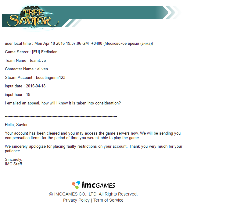Tree of Savior is an awesome game but IMC are horrible at controlling and fixing things.