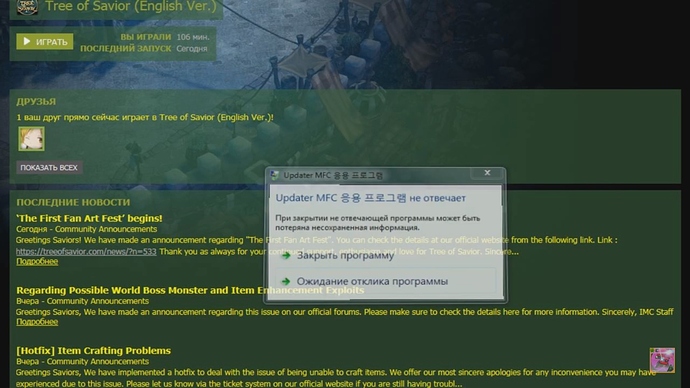 Bug Description : After game file checking, the client shows 100%-SERVICE and then not answering and crash.