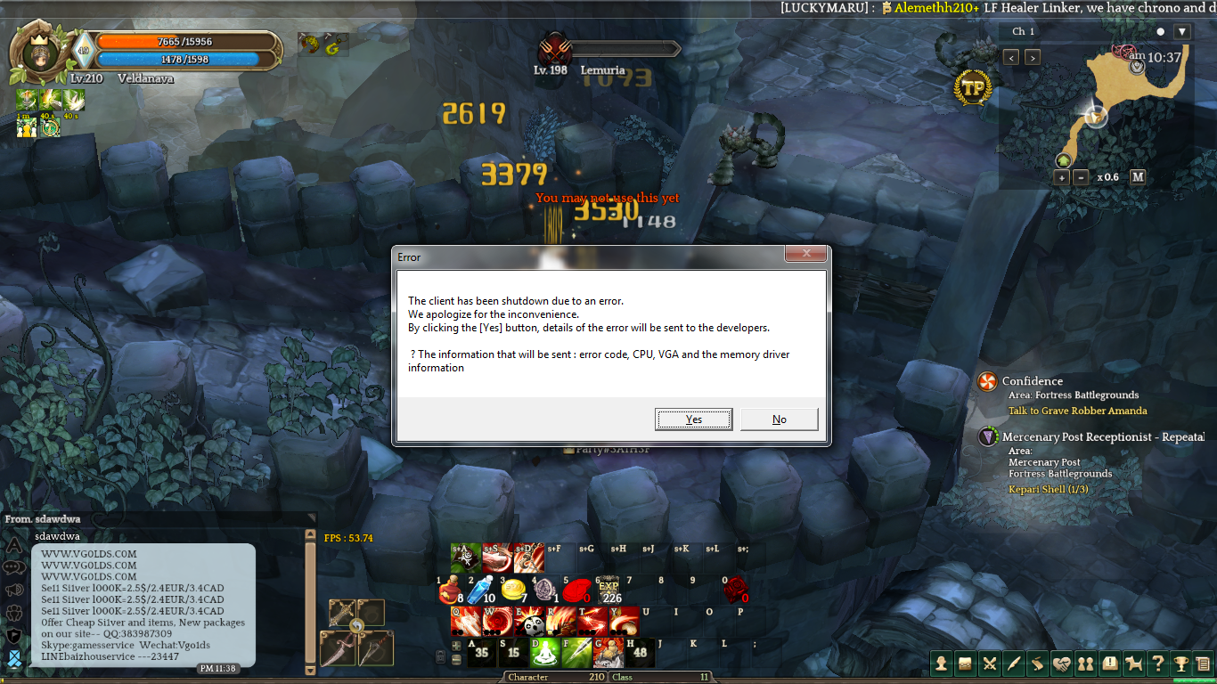 Bug Description : Game crashes when spamming attack skill and generates an ExtraDump_Client_tos: