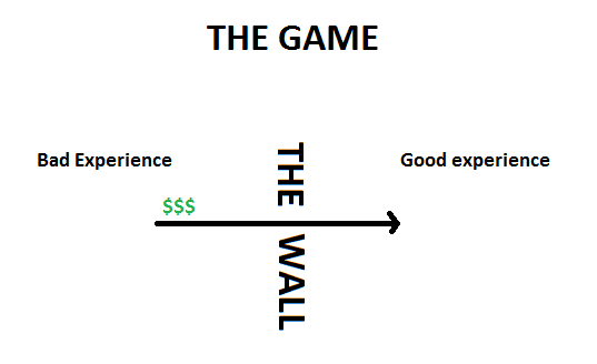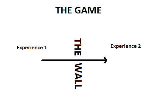 Game Design is the art of creating meaningful experiences. This concept is important to know as it explains why game designers tend to study more of human psychology than the technical aspects of programming and art and The Wall is all about experiences, here is a diagram that illustrates what The Wall means:
