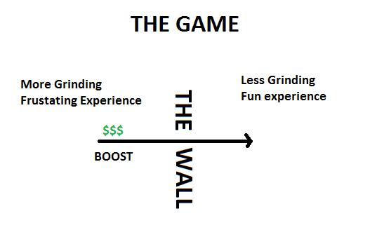 The EXP boost can be the wall in two similar fashions, the explicit version that is the endgame content and the implicit grinding time.