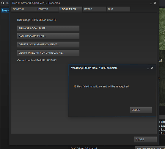 So I close it - go to steam and verify files, it tells me “16 files failed to validate and will be reacquired”, I wait while this process occurs.