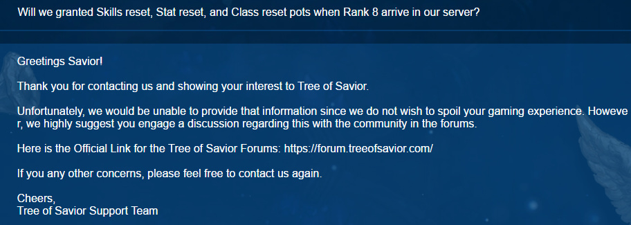 Thank you for contacting us and showing your interest to Tree of Savior.