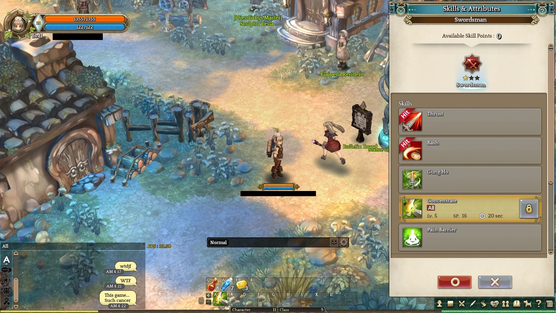 So as you can see in the pic i’m BLv11 JLv 9 and have only spent 5 skill points on one skill so far yet my available points are zero. This occurred during some heavy on and off lag spikes. During the spikes I’m not able to equip gear, or complete quests. When this glitch happened my concentrate was level 4, I clicked once and nothing happened, so like an idiot I clicked like 10 more times, then when nothing happened I waited for a minute only to watch my available stat points drop off one by one until I was at zero. I then found myself lying on the ground sobbing in fetal position, rocking back and forth…