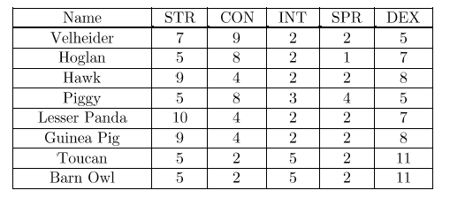 lesser panda tiene la STR mas alta (puede ser util para hunter)