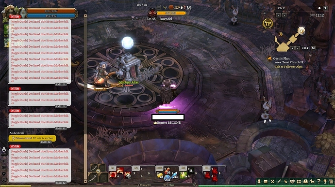 As you can see, I had to install the addon to reject duels, most botters use that spamming script. but, after a “couple” of duel rejections, it switches to a trading request spamming mode.