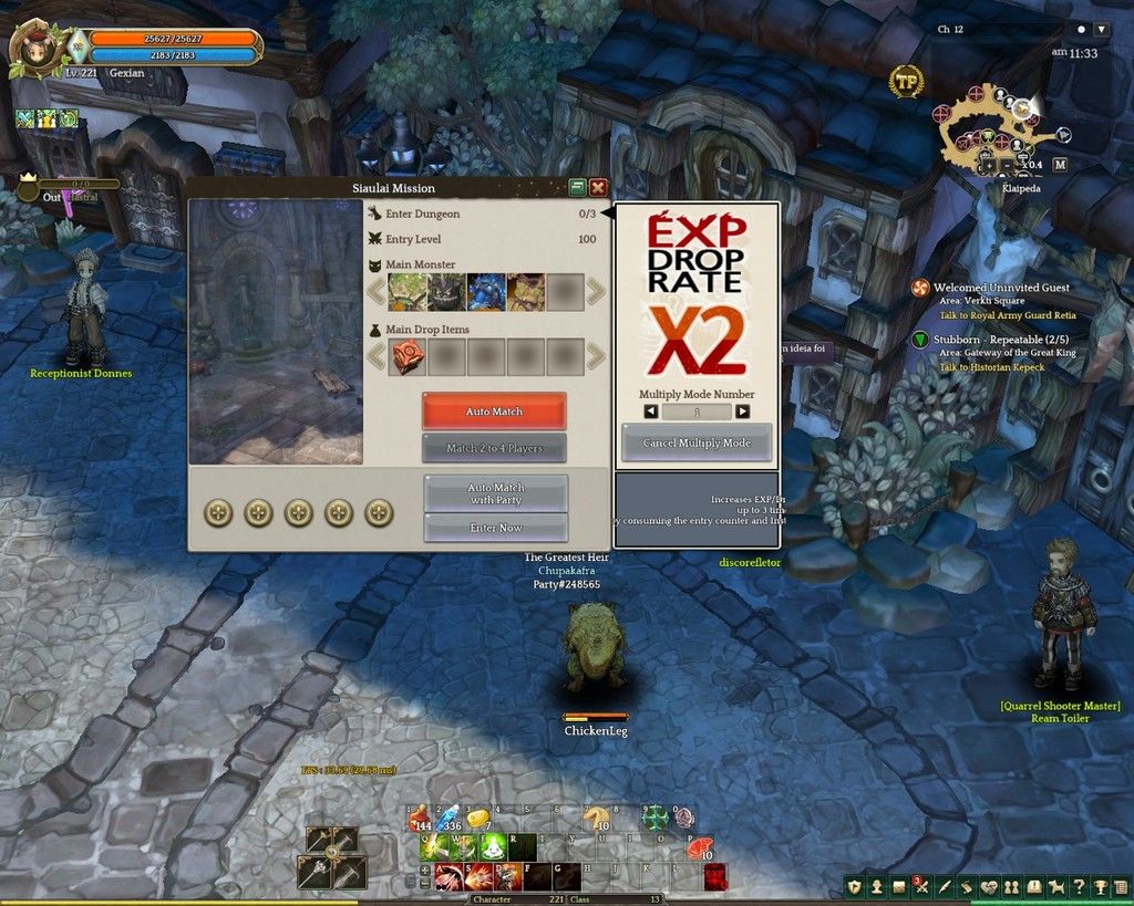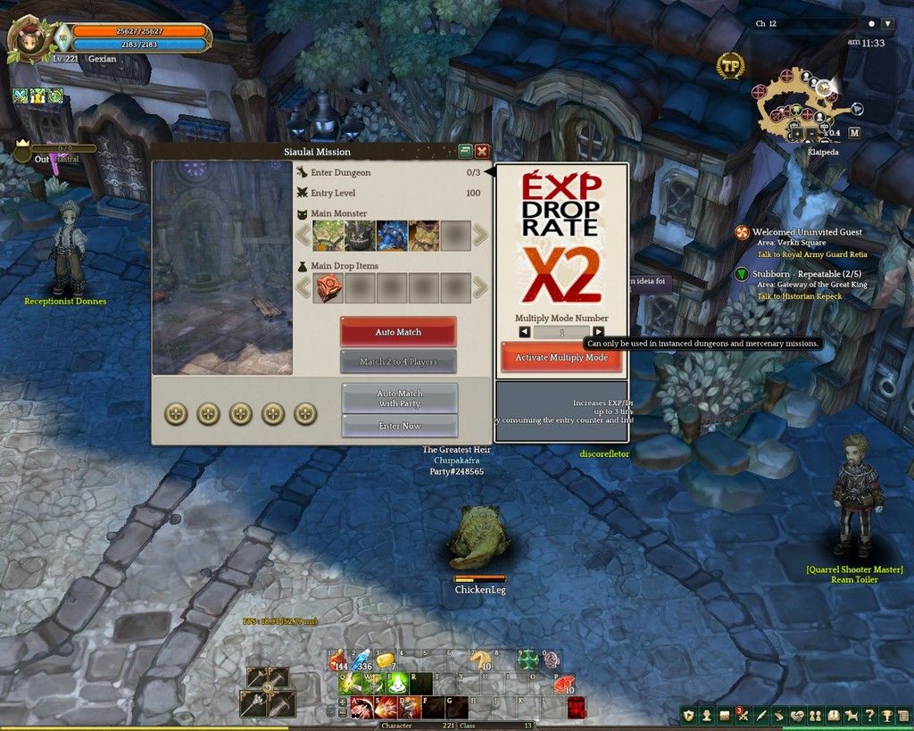 primero dirígete a la entrada de un Calabozo (instance dungeon) o con Receptionist Ramda de las misiones mercenarias y abre la ventana para ingresar al calabozo