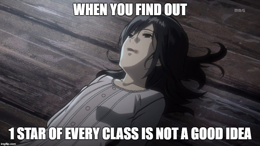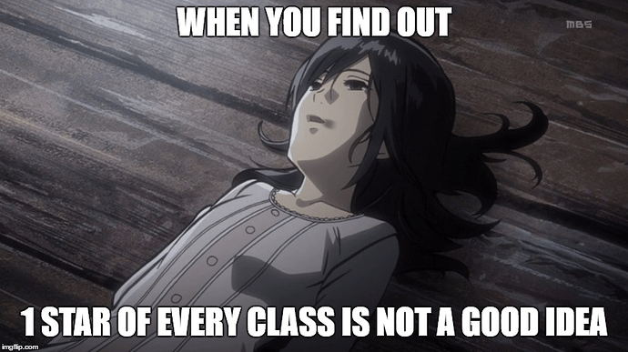 Now with that out of the way, it’s time for making your build! While making your build, ask yourself " How does this class complement my future classes" look for synergies because that’s how you get a good build. Try not to have more than 3 choices because that makes you decent at everything which equals in having a really weird character and you don’t know exactly what to do.