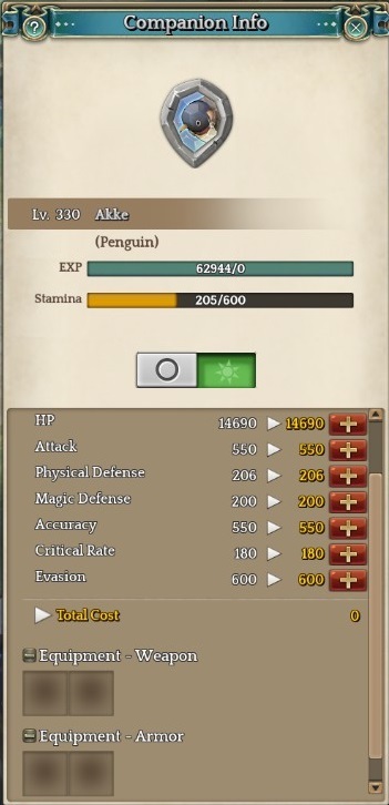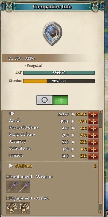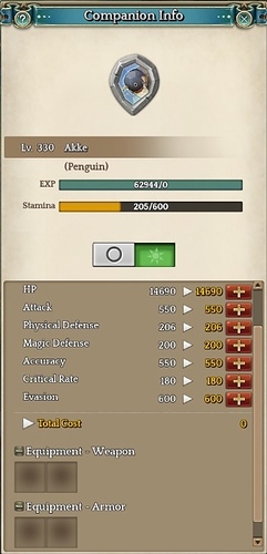 Now, how did I dress Akke? Well, I chosed to stick with the best HP gears I could give him, since I had benefict from them the most, so we enter: