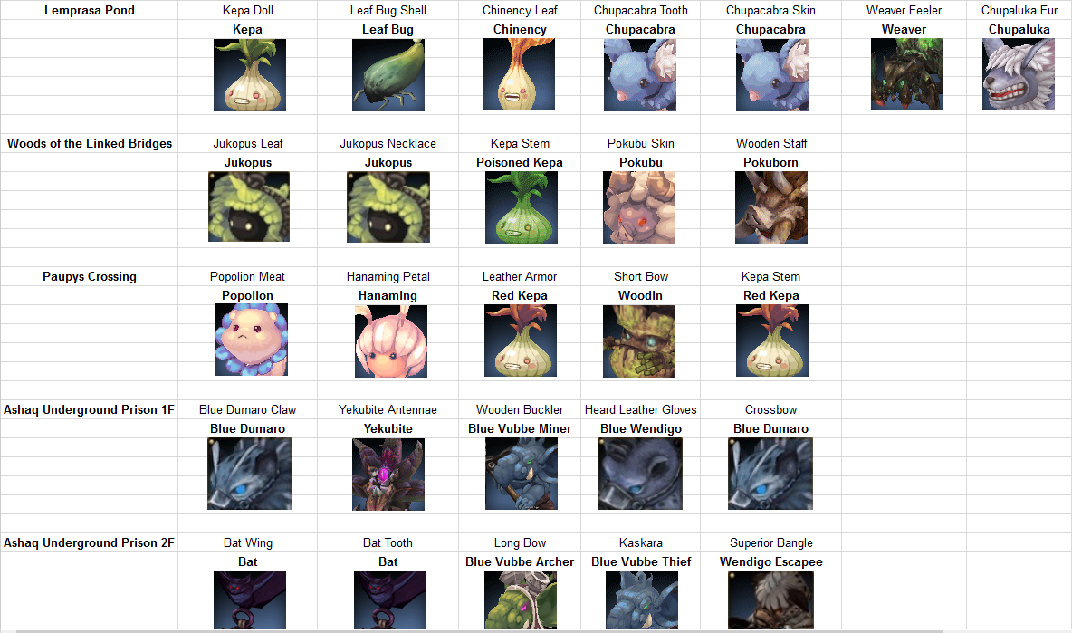 Before leaving the link to that GDoc, i must warn you that some “Recipes” are missing their respective monster information just because i started that GDoc today and just couldn’t remember who drops them. Any help is appreciated and i’ll update that GDoc daily, following my progression into the game.