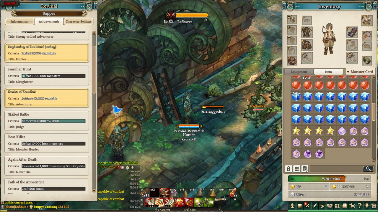 the reward for this achievement is pretty dissapointing, you got nothing from the title (except the pride of using it of course lol), the loots pretty bad either, i only got 10 Raflower Gems, 2 Bat Gems, 30 Red Gems, 13 Blue Gems, 9 Golden Anvils, 2 Mithril Ores and a lot of junks that only worth selling, my silver is around 480k right now (you can get a lot more with all the time spent in dina bee farm or somewhere else)