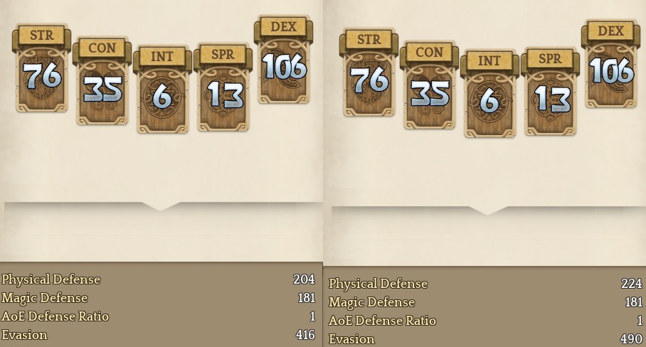 I’m going to use two STR:DEX ratios that are being used and/or discussed: 1 to 1 and 1 to 3.